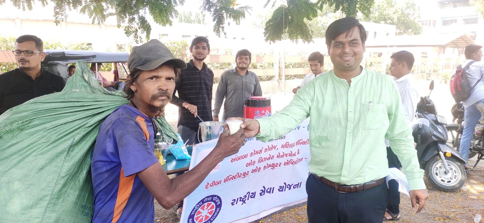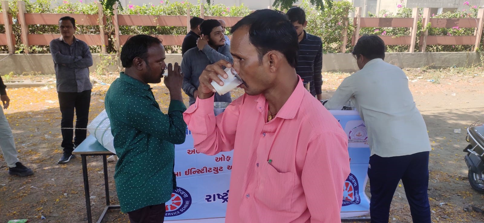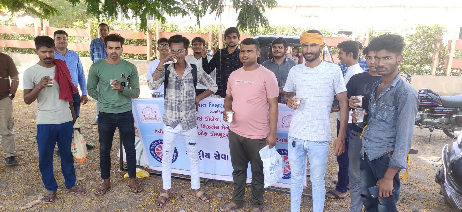 તા. 04/05/2024 (શનિવાર) ના રોજ N.S.S. યુનિટ દ્રારા રાહદારીઓને વિના મુલ્યે “છાશ વિતરણ કાર્યક્રમ” નું આયોજન કરવામાં આવ્યું હતું. આ કાર્યક્રમ કોલેજ પરિસરના ગેટ બહાર યોજવામાં આવ્યો હતો. સમગ્ર કાર્યક્રમ કોલેજના આચાર્ય ડો. ફાલ્ગુની એમ. ઠક્કરના માર્ગદર્શન હેઠળ N.S.S. યુનિટના સંયોજક ડો. તેજસ બી. શાહ દ્રારા કરવામાં આવ્યું હતું. આ કાર્યક્રમમાં કોલેજનાં N.S.S. યુનિટનાં વિધાર્થીઓએ સ્વૈચ્છિક રીતે ભાગ લીધો હતો.