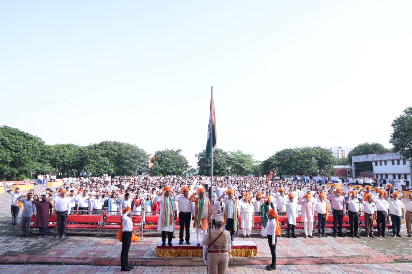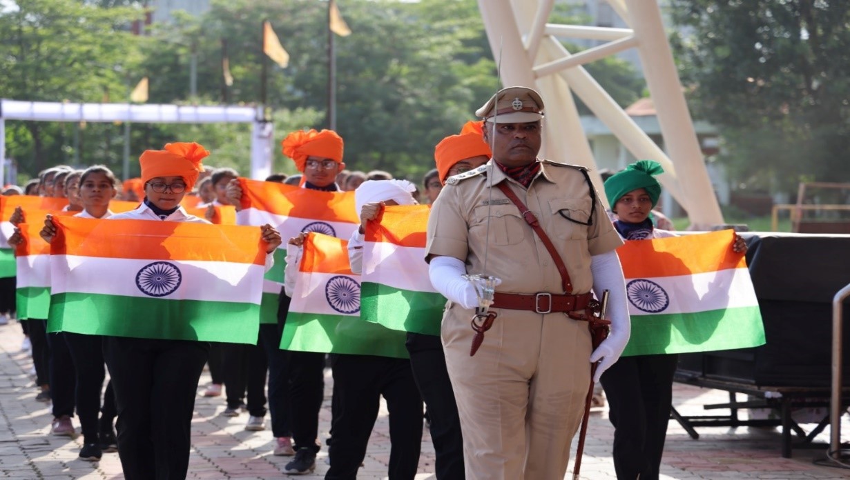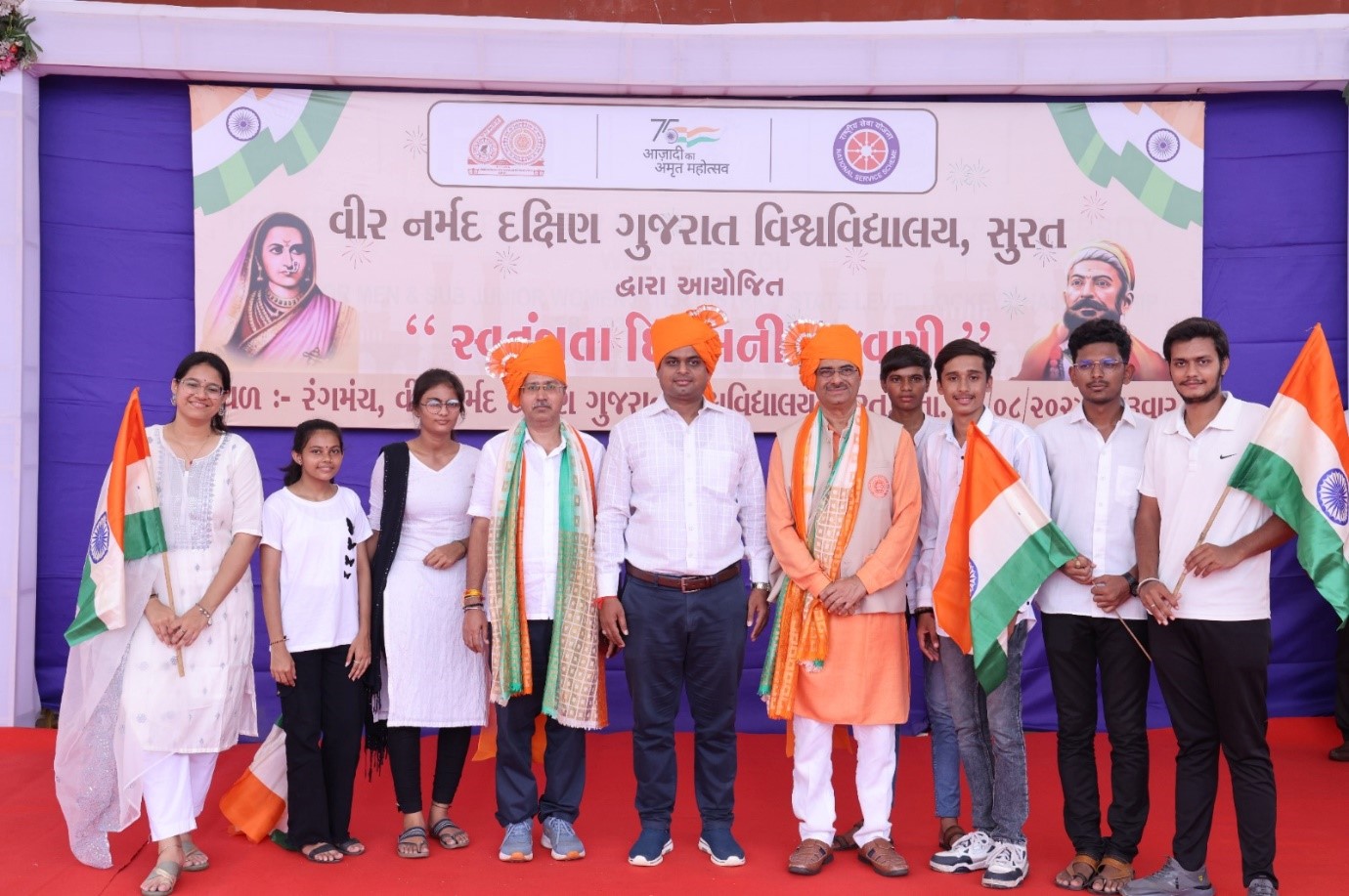 આજ રોજ તારીખ 15/ 8 /2024 ના રોજ વીર નર્મદ દક્ષિણ ગુજરાત યુનિવર્સિટી ખાતે આઝાદી કા અમૃત મહોત્સવ અને હર ઘર તિરંગા અભિયાન અંતર્ગત 78 માં સ્વતંત્રતા દિન નિમિત્તે સવારે 8:00 કલાકે અંબાબા કોમર્સ કોલેજ , મણીબા ઇન્સ્ટિટયૂટ ઓફ બિઝનેસ મેનેજમેન્ટ અને દેવીબા ઇન્સ્ટિટયૂટ ઓફ કોમ્પ્યુટર એપ્લિકેશનના પ્રોગ્રામ ઓફિસર ડોક્ટર તેજસ બી શાહ તથા બી.કોમ., બી.બી.એ., બી.સી.એ. અને એમ.કોમ.ના વિદ્યાર્થીઓ મોટી સંખ્યામાં હાજર રહ્યા હતા. તમામ વિદ્યાર્થીઓએ શરૂઆતથી લઈ અંત સુધી ધ્વજવંદન તેમજ સાંસ્કૃતિક કાર્યક્રમનો ઉત્સાહપૂર્વક આનંદ માણ્યો હતો.