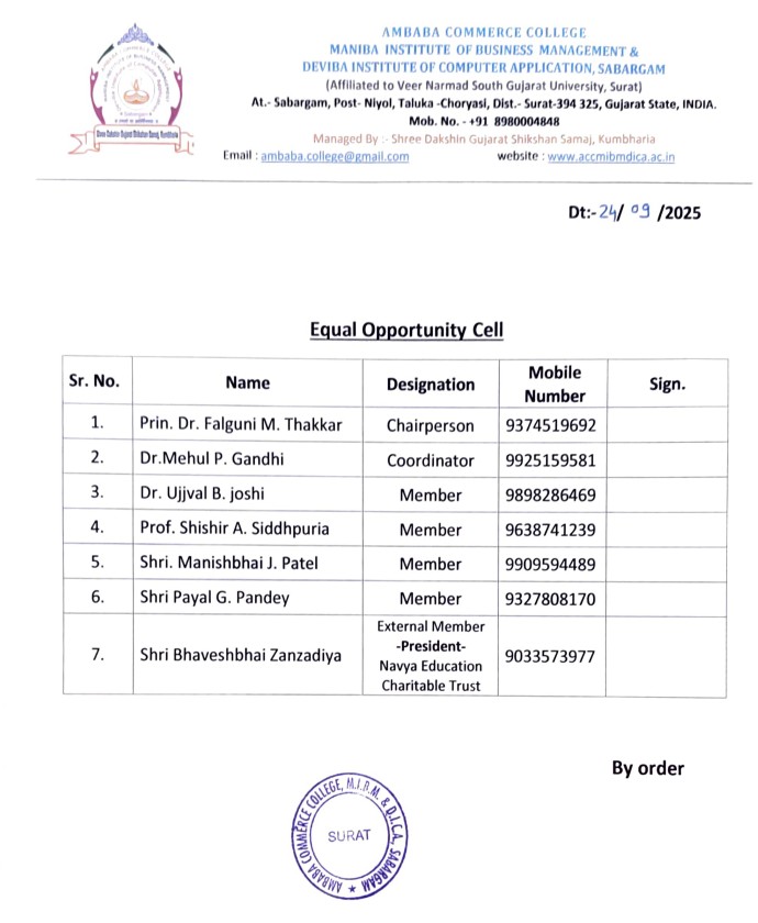 AMBABA COMMERCE COLLEGE, MANIBA INSTITUTE OF BUSINESS MANAGEMENT & DEVIBA INSTITUTE OF COMPUTER APPLICATION, SABARGAM